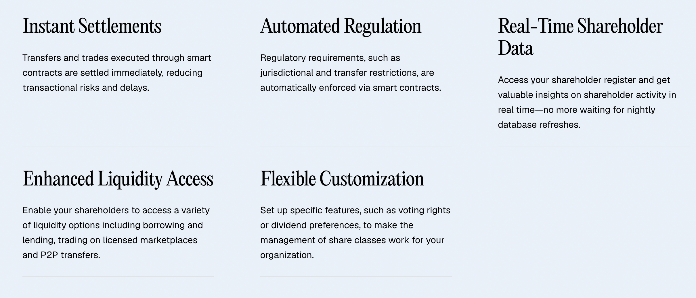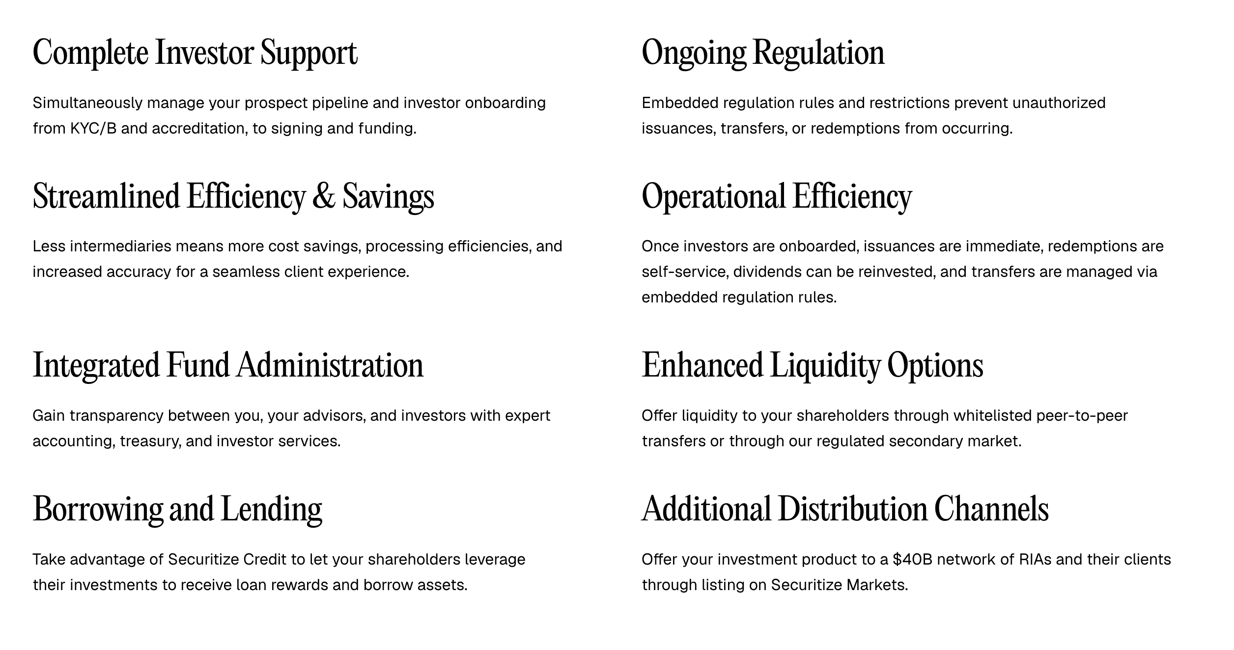Our fund administration solutions improve transparency between you and your investors, and act as an add-on to our larger end-to-end suite of products from structuring to onboarding, issuance to trading, and all the operational support you need to operate with regulation.
